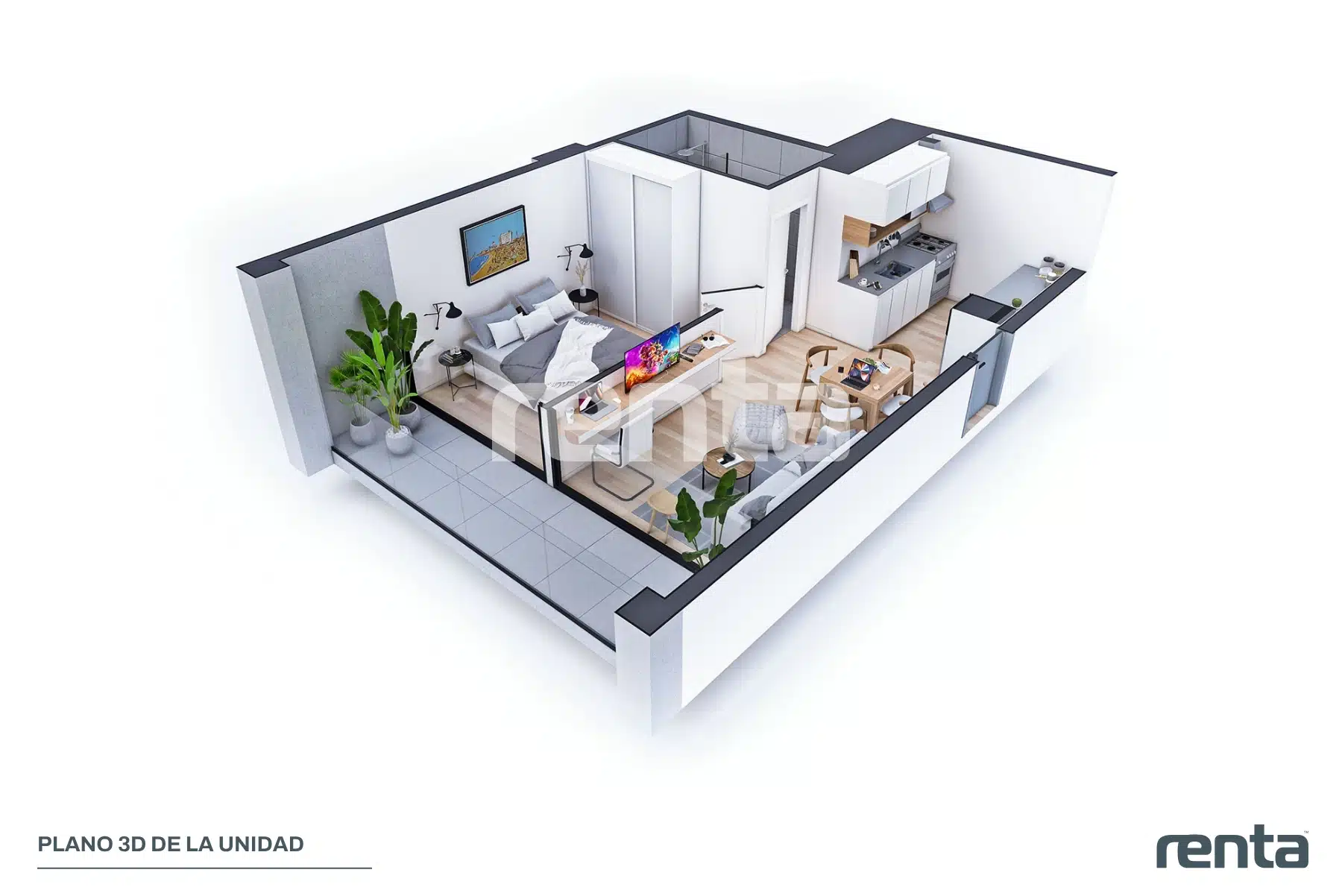 Unidad seleccionada para renta, ubicada al frente del proyecto con gran terraza frontal y amplios espacios.
